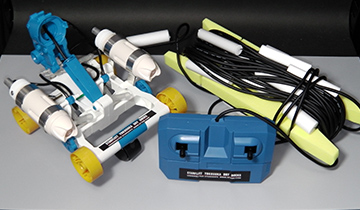 予想しないわけでは無かったのですが、一つ問題が起こりました。ケーブルの重さです。水底を走っていくとケーブルがどんどん伸びていきます。すると引きずるのが重くなって速力が落ちます。さらに後ろから引っ張られているので方向を変えるのが難しくなります。これは遠くで沈没しているときには大きな問題になります。有線ケーブルを使うときにはケーブル自体に所々浮力材を付けて中性浮力にして、本体の動きの自由度を保たねばなりませんが、そこまでしなくても大丈夫かも、と思ったのが大間違い。予備で持って行った浮力材を本体の側に2カ所付けることでかろうじて方向を変えることが出来るようになりましたが、基本的にはケーブルを引っ張らなければならないので重量がかかるのは避けられません。
