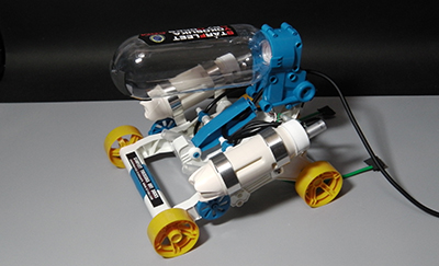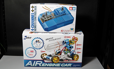 今回は塩ビ加工では無く手っ取り早く市販品で使えそうなモノを探して作りました。本体はエアエンジンカーという空気を圧縮してピストンを動かして走るというメカメカしいモノ。非常に面白そうなメカなのですが、残念ながらこのメカは使いません。