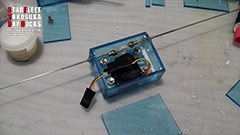 そしてそれを実現するためは機能を分散したメカボックスを搭載しています。素材は機能に合わせた2種類を使い分けています。アルミ板とアクリル板を使用して使っています。強度を維持し変形を避けるためにアクリル板を使用し、省スペースを実現するためにアルミ板を使用しています。以下はメカボックスの解説となります。