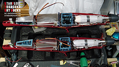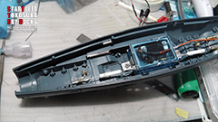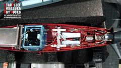 前作同様個別水密ボックスのウエットハルの船体構成となります。前回の改定時のリポバッテリー仕様を踏襲しています。まずは走行系の解説です。