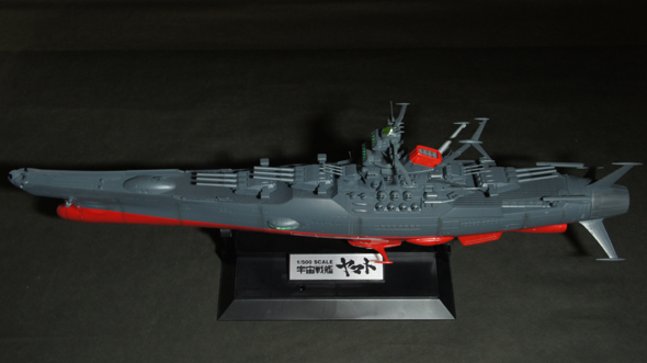この二隻はプロポーション的にはほとんど同じデザインと言っても良いでしょう。1/350が艦首が幅広で船のイメージが強かっただけに、こちらの方が宇宙船ぽくて好きです。それに1/350の艦首のそりはかなり水の抵抗になりましたから、このデザインの方が都合が良いというのもあります。本当はあと10Cm大きいとギミックがさらに入れやすかったのですけれども、一般家庭に置くにはこれでも大きいのかも知れません。ですが、どうせ大きいならあと10cm、前作1/350ヤマト同様80cm近い大きさにして欲しかったです。贅沢な悩みですけれど。(´Д`;)